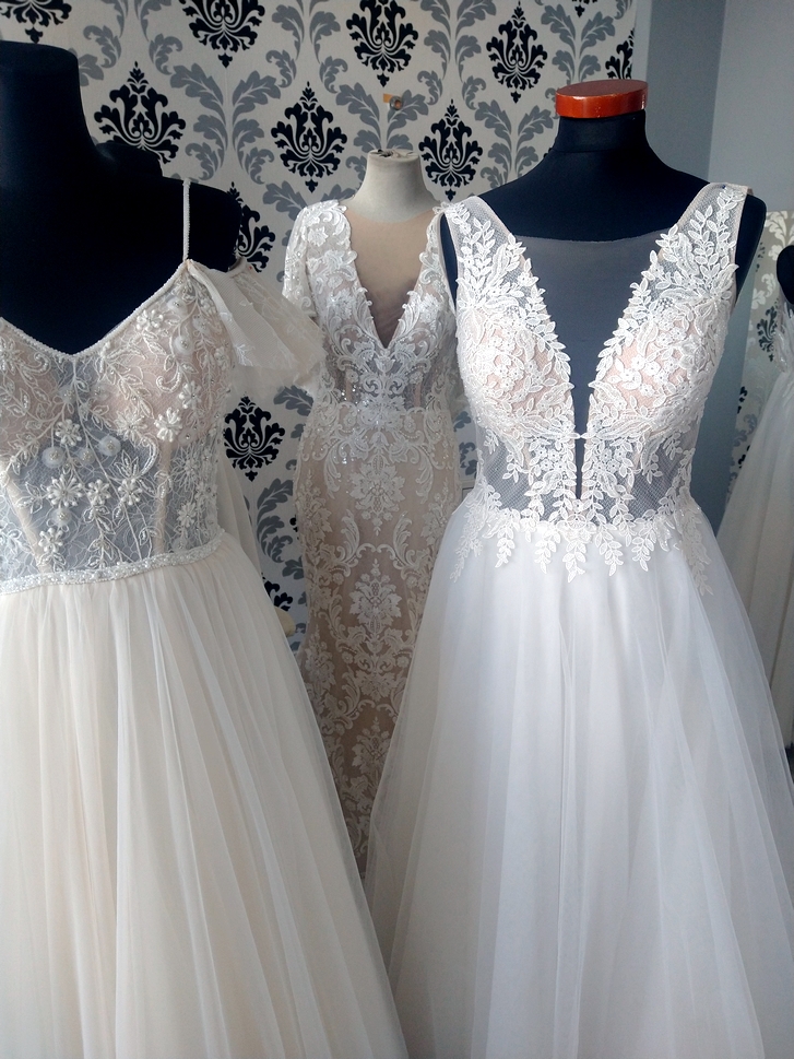 Oferujemy pełną rozmiarówkę od roz. 36 do 56 w dostępnych cenach. Zapewniamy dostosowanie sukien do nietypowych sylwetek, przyszłych mam i bardzo dużych rozmiarów - oferta tak w sprzedaży jak i do wypożyczenia.